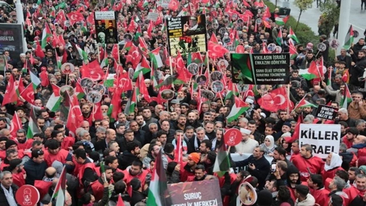 ŞANLIURFA (İGFA) - Filistin’e Destek Platformu tarafından Şanlıurfa’da Filistin için özgürlük yürüyüşü düzenlendi. Abide Kavşağından başlayan yürüyüşe binlerce kişi katıldı. Tekbir seslerinin yükseldiği yürüyüşte İsrail’in Filistin’de uyguladığı savaş lanetlendi.
