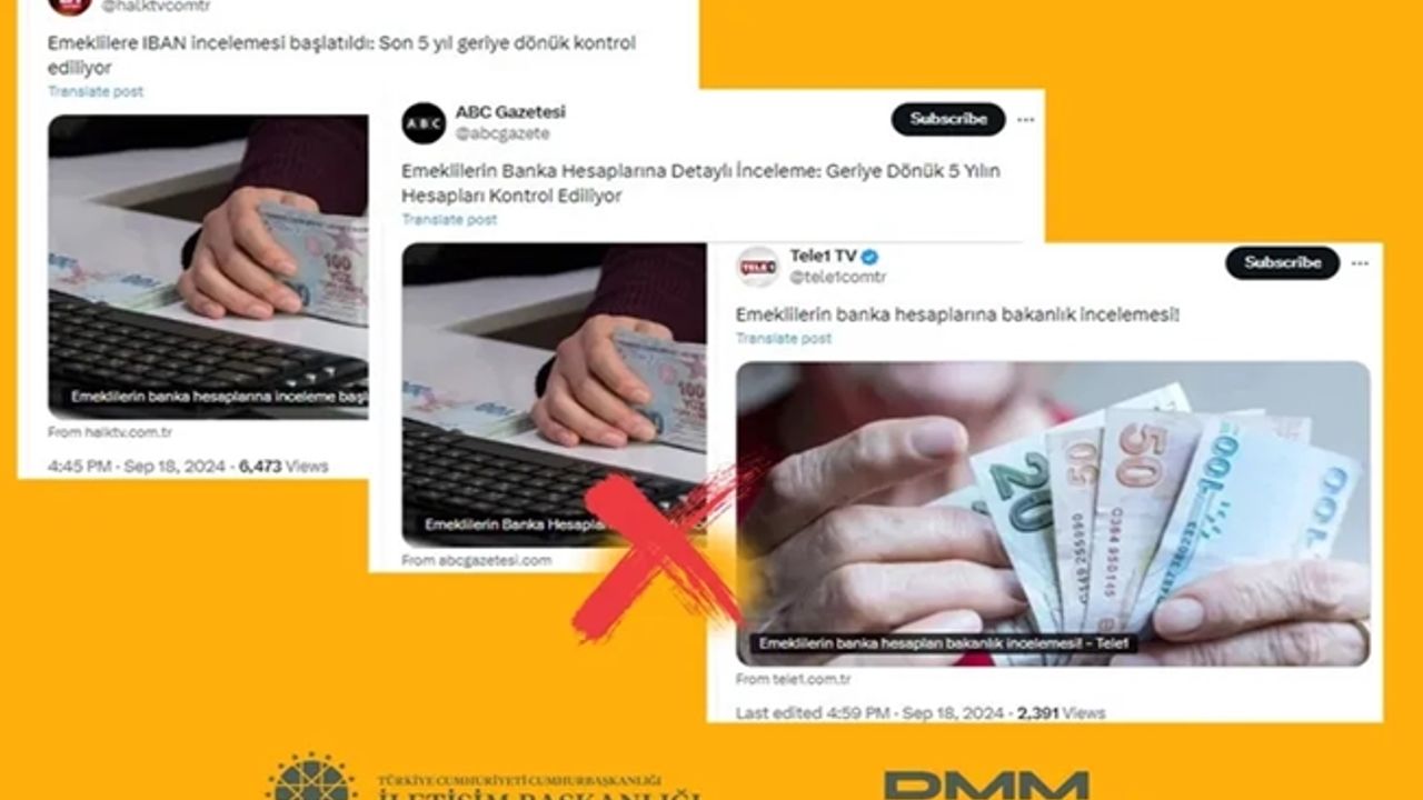 Bazı basın yayın organlarında yer alan, “Emeklilerin banka hesaplarına inceleme başlatıldı. Son 5 yıl geriye dönük kontrol ediliyor.” iddiası ile ilgili açıklama İletişim Başkanlığı'ndan geldi.