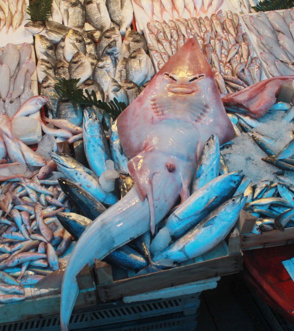 Mersinli balıkçılar, Akdeniz açıklarında insan yüzünü andırması ile dikkat çeken ve denizlerde ender görülen sapan balığı yakaladı. Mersin Balık Pazarı'nda, balıkçıların tezgahını süsleyen 1 metrenin üzerindeki sapan balığı, pazara alışverişe gelen vatandaşların da ilgisini çekiyor. Balıkçılar tarafından daha da ilgi çekici hale gelmesi için baş kısmına gözlük takılan balığın bol bol fotoğrafı çekiliyor.