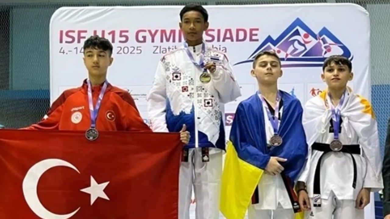 İZMİR (İGFA) - Uluslararası Okul Sporları Federasyonu’nun (ISF) 2025 yılı faaliyet programı kapsamında, 04 - 14 Nisan 2025 tarihleri arasında Sırbistan’ın Zlatibor kentinde düzenlenen "ISF U15 Gymnasiade" turnuvasında ülkemizi başarıyla temsil eden Buca Şehit Hüseyin Şimşek Ortaokulu öğrencisi olan Yunus Emre Özden, 41 kg Taekwondo kategorisinde Dünya İkincisi olarak büyük bir başarıya imza attı.