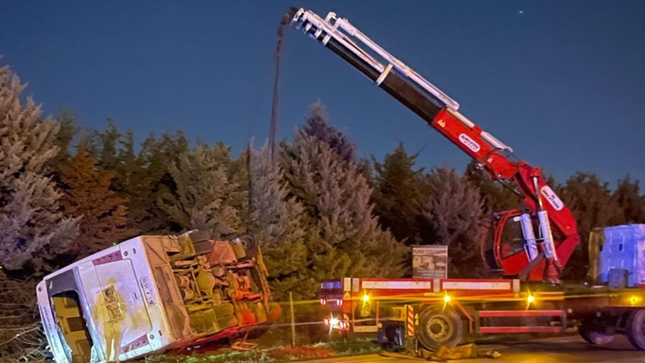 İhbar üzerine olay yerine polis, sağlık ve itfaiye ekipleri sevk edildi. Serviste bulunan 8 işçi, ekipler tarafından araçtan çıkarılarak olay yerinde yapılan ilk müdahalelerin ardından çevredeki hastanelere kaldırıldı. Hastaneye sevk edilen yaralılardan birinin hayati tehlikesinin devam ettiği belirtildi.