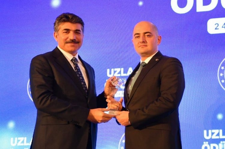 Osmaniye Cumhuriyet Başsavcısı Uygur Kağan Arısoy’a ödül, Hâkimler ve Savcılar Kurulu Üyesi Ömer Faruk Yıldırım tarafından takdim edildi.