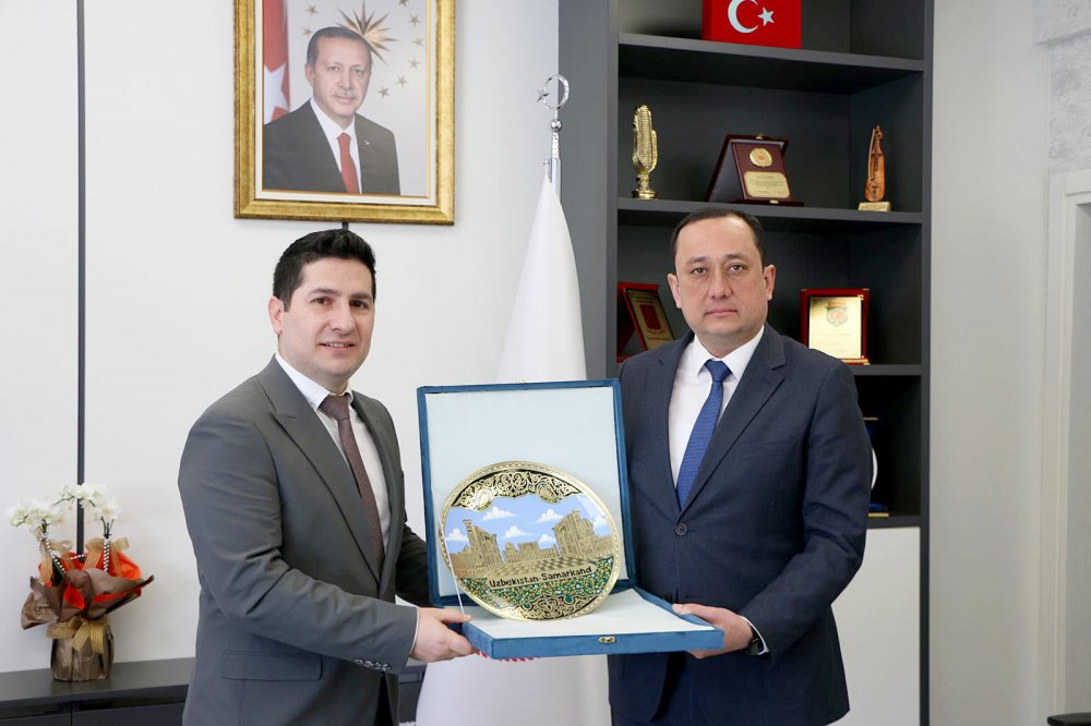 Özekistan’ın Semerkant eyaletinden gelen sağlık yöneticileri ziyaret programı kapsamında ilk olarak Vali Rahmi Doğan’ı ardından ise İl Sağlık Müdürü Doç. Dr. Kayhan Özdemir’i ziyaret etti. Heyet başkanı İl Sağlık Müdürü Özdemir’e Semerkant'a özgü ekmek ve plaket takdim etti. Semerkant sağlık yöneticileri daha sonra ilimizdeki sağlık kuruluşlarını gezerek sağlık hizmetleri, hastane altyapısı ve sağlık çalışanlarının çalışma koşulları hakkında yetkililerden bilgi aldı.