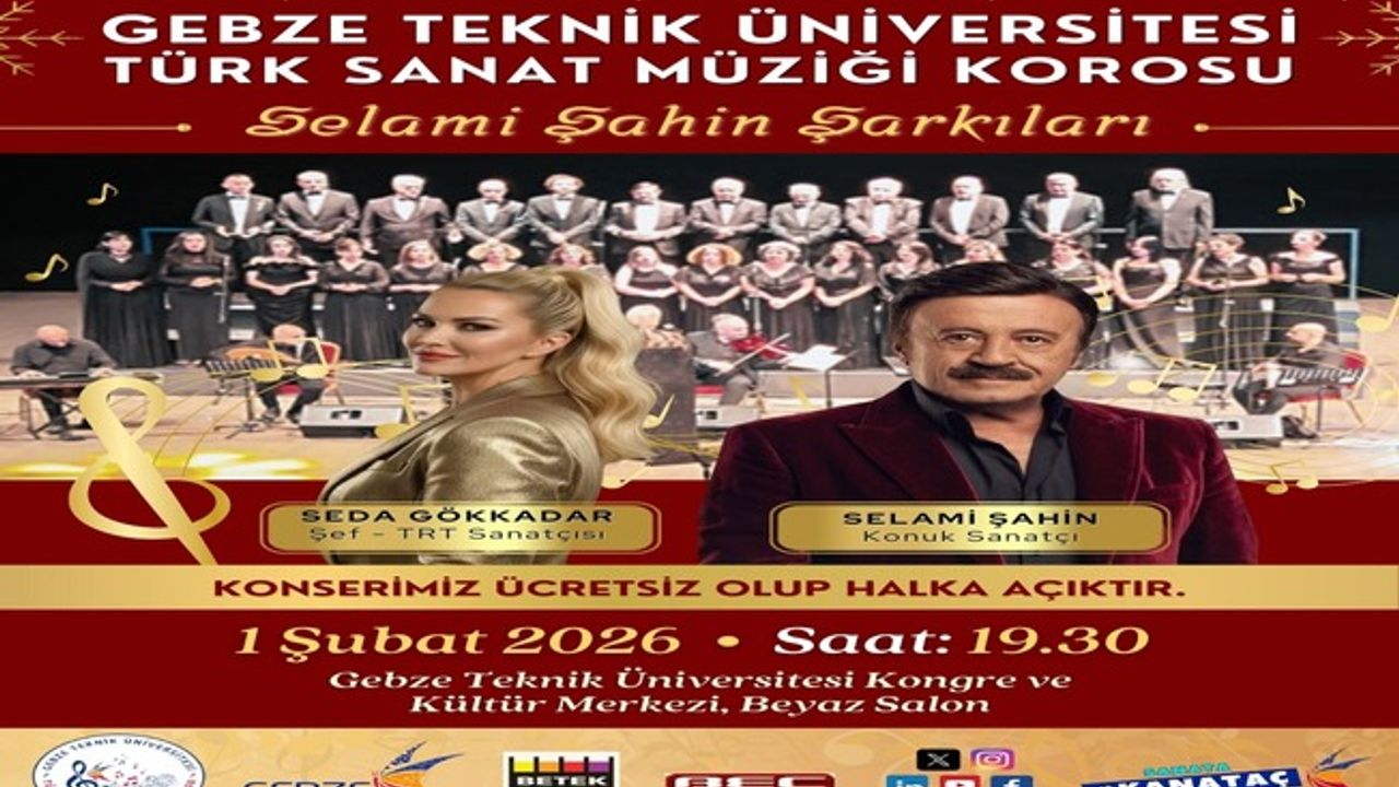 Gebze Teknik Üniversitesi Türk Sanat Müziği Korosu, ünlü sanatçı Selami Şahin şarkılarını seslendireceği özel bir konserle müzikseverlerle buluşuyor.