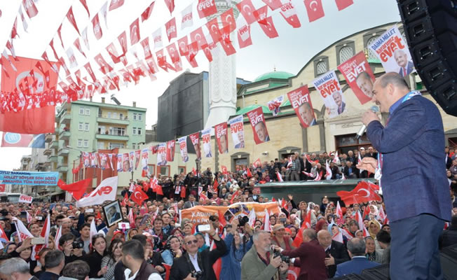 İçişleri Bakanı Süleyman Soylu mitingde yaptığı konuşmada, “size çok teşekkür ediyoruz Beşikdüzü. Ülkemizi, istila etmek istediler ama başaramadılar. Anladılar ki bayrağı indiremeyeceğiz. Anladılarki bu millet esaret kabul etmeyecek. Bünyesi zayıf olan bir sistem kurdular. Türkiye’nin üzerinde oyunlar oynadılar. Bunu on yıllardır yapıyorlar. Ülkemi yarınlara güçlü bakmamasını, bu şefkat ve iyilik medeniyetini bitirmek istediler. Menderesi astılar, Özal’ı tasfiye ettiler. AK Parti hükümetine kadar hükümetlerin süresi 16 aydı. 16 Ayda hangi adımı atacaksın da millete verdiğin sözü yerine getireceksin. Kurdukları sistem açıktı.